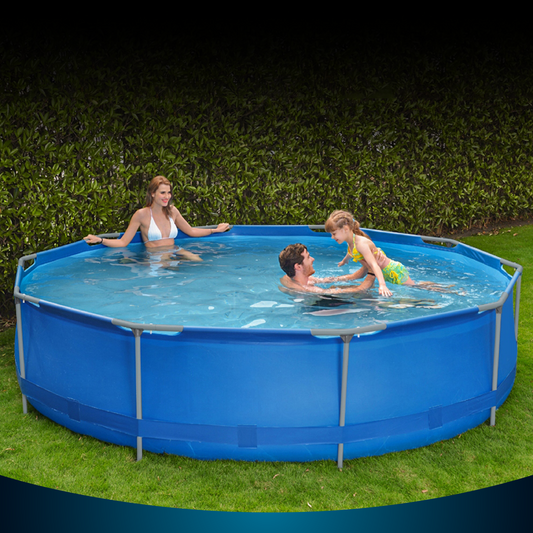 Basen ogrodowy ze stalową ramą, kompletny zestaw z filtrem, pokrywą pompy i dozownikiem chemikaliów, okrągły basen ze stalową ramą, kompletny zestaw